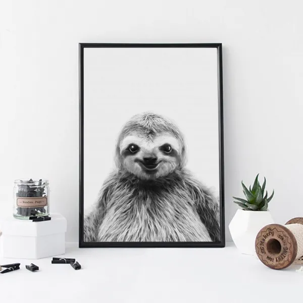 검은 흰색 나태 동물 캔버스 포스터 보육 인쇄 벽 예술 그림 북유럽 아이 장식 그림 어린이 침실 장식, 30x40 cm No Frame^+0