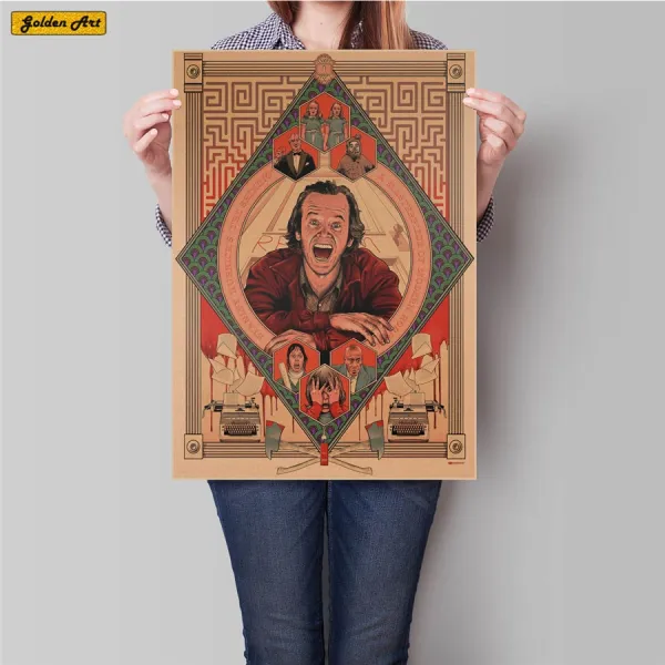 빛나는 공포 빈티지 크래프트 종이 영화 포스터 레트로 벽 스티커 골동품 바 카페 홈 인쇄 그림 45.5x31.5 cm, 1개, 블랙^0