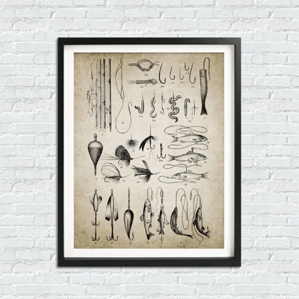 빈티지 낚시 인쇄 낚싯대 후크 미끼 낚시 벽 장식 맨체스터 포스터 예술 그림 낚시꾼 선물, A1 60x84 cm No Frame^+0