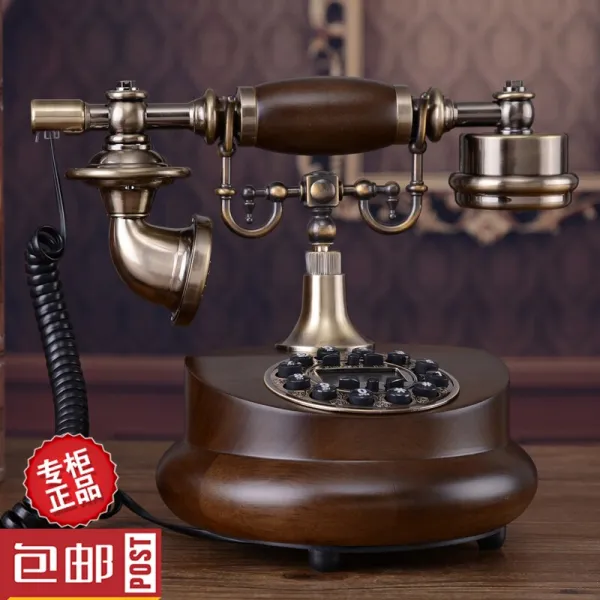콘티넨탈 레트로 금속 나무 골동품 전화 벨 톤 전화 유선 전화 홈 오피스 장식 장식 홈 아트, 1개, 단일