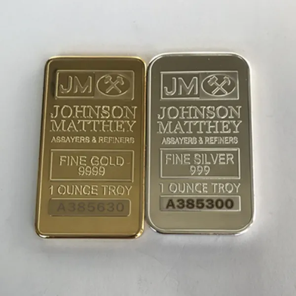 20 pcs 비 자기 존슨 matthey jm 은행 실버 24k 골드 도금 덩어리 막대 기념품 동전 다른 레이저 일련 번호, 1개, SILVER X 20^0