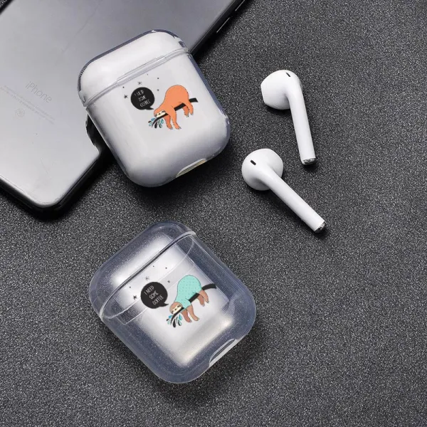 애플 airpods 케이스에 대 한 부드러운 실리콘 귀여운 이어폰 케이스 이어폰 액세서리에 럭셔리 만화 나태 투명 한 airpods 케이스, 단일, 은