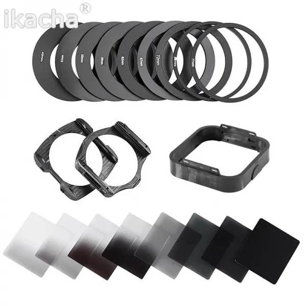 범용 전체 점진적 nd2 4 8 필터 세트 + 9 pcs 링 어댑터 49mm 52mm 55mm 58mm 62mm 67mm 72mm 77mm 82mm cokin p 시리즈 용, 1개, 단일