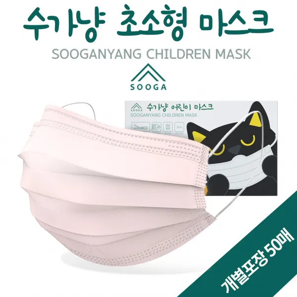 수가냥 초소형 소형 마스크 개별포장 50매 유아용 어린이용 저자극 순한 3중 MB필터 어린이집 유치원