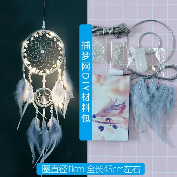 인도 Dreamcatcher 수제 DIY 재료 키트의 후계자는 Dream Net 장식품 실내 펜던트를 구성합니다, 11. 색상 분류: 그레이 문라이트 머티리얼 팩