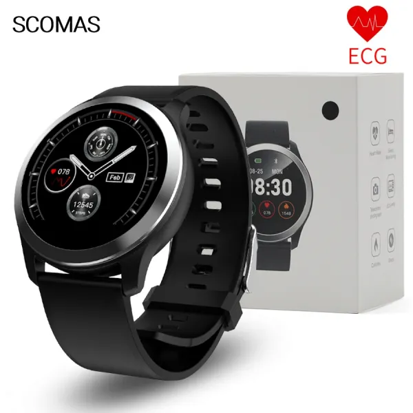 Scomas ecg ppg 똑똑한 시계 1.22 "둥근 전시 심박수 혈압 감시자 ios 안드로이드를위한 ip67 방수 smartwatch, 1개(A0), 단일(A0), 블랙(A0)