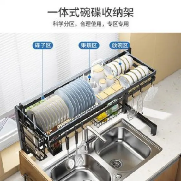 식기건조대 스텐 주방 싱크대 선반 식기 수납 거수기, 06 【싱글 홈】블랙 65cm 홑겹 세트