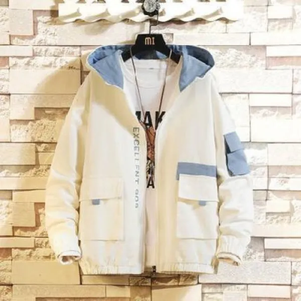 가을 재킷 점퍼 자켓 네트워크 사회 남자 음을 떨어 빨간색 재킷 후드 봄과 가을 멋진 건달패가 중국식 홑 저고리. 루즈 코트 자켓 카고일 밝혔다. 계 남