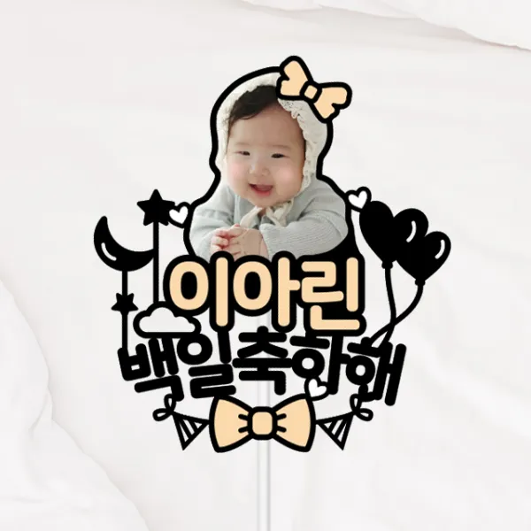 사진 토퍼 생일 돌기념품 백일 주문제작, 1.리본, 1.베이비 핑크