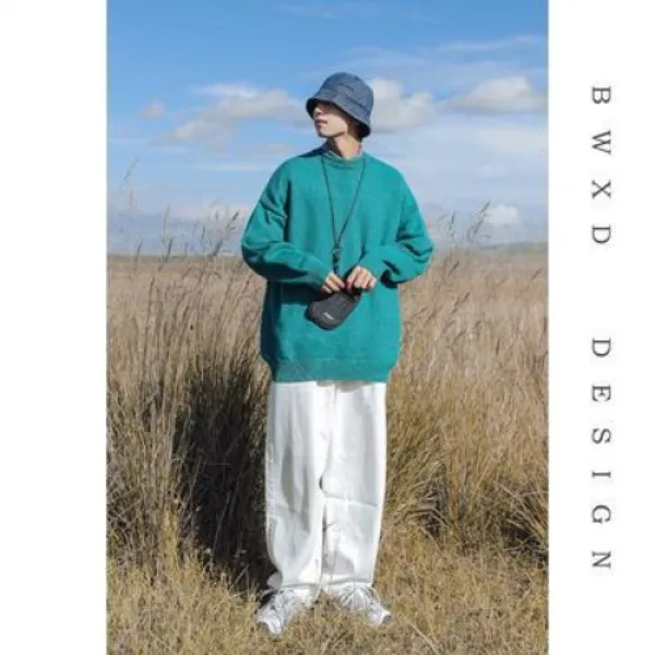 남자 니트 스웨터 남녀공용 남성 BWXD 추동 솔리드 긴팔 커플 소프트터치 노련미 풀오버 남