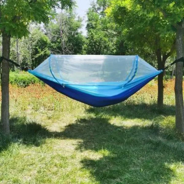 하와이 해먹 의자 거치대 백패커 자동모기장 해먹 낙하산 2인 캠핑 해먹 방측 그네뛰기 니스방적, 01 더블 컬러 랜덤 (모기장 없음)