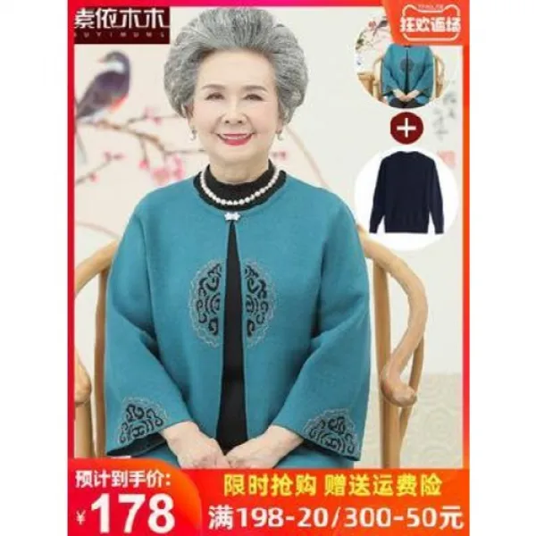 할머니 가디건 노인네 가을옷 스웨터 코트 속 노년기 엄마 상의 세트