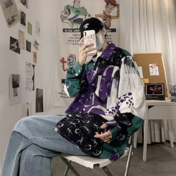 남자 홈쇼핑 남성 데일리 가을 마파람 멋쟁이 셔츠 남풍 소중 디자인 힙합 스트리트 배색 플라워 긴팔 아우터