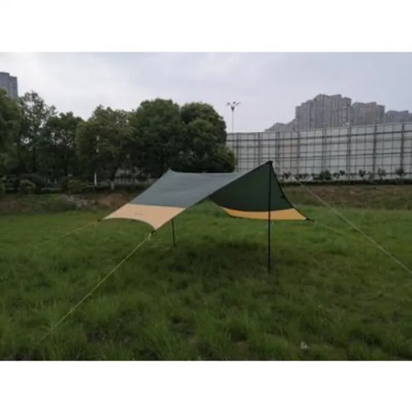터널형 타프 텐트후라이 야외 산 천막 방수 자동차 그늘 견학 대피소 차박용 타프, 커피 + 2.4m 철 막대 4 개 + 스틸 네일 윈드 로프