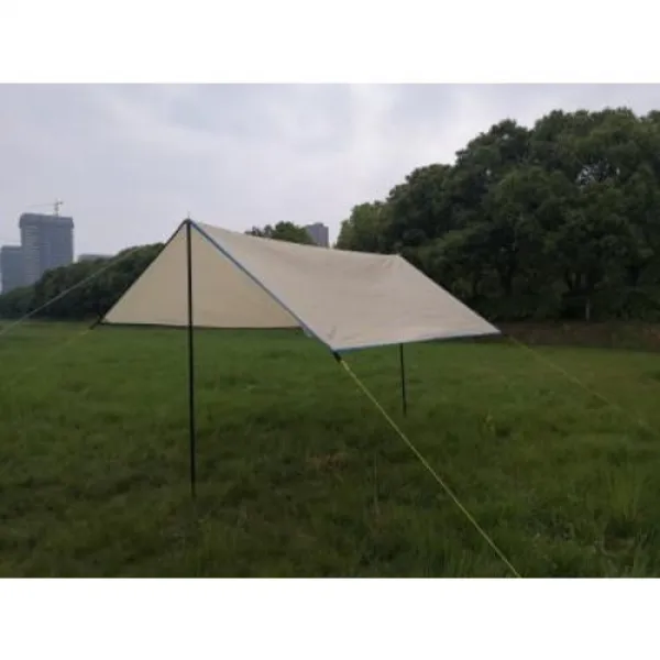 터널형 타프 텐트후라이 야외 산 천막 방수 자동차 그늘 견학 대피소 차박용 타프, 미색 + 2.4m 철 막대 4 개 + 스틸 네일 윈드 로프