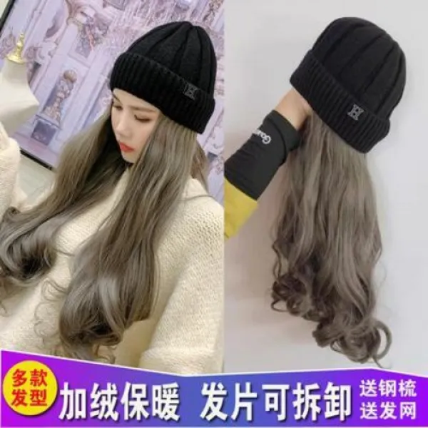 니트 모자 여성 남성 가발모자 일체형 단발 장발 웨이브 항암가발 가발, 02 Grey, 오류 발생시 문의 ( 브링미샵 )