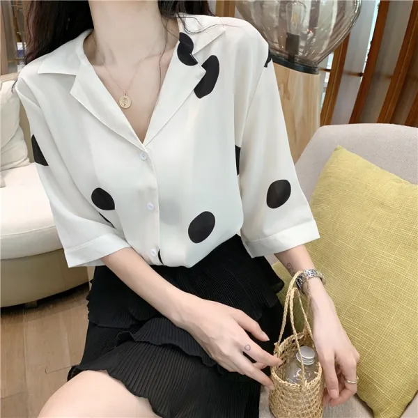 기질 폴카 도트 쉬폰 셔츠 블라우스