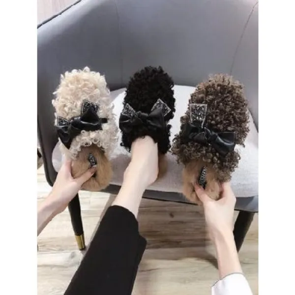 겨울 여성 기모 퍼 양모 모카신 패딩 털신 방한화 털슬리퍼백 반슬리퍼 여성외피 가을 망루