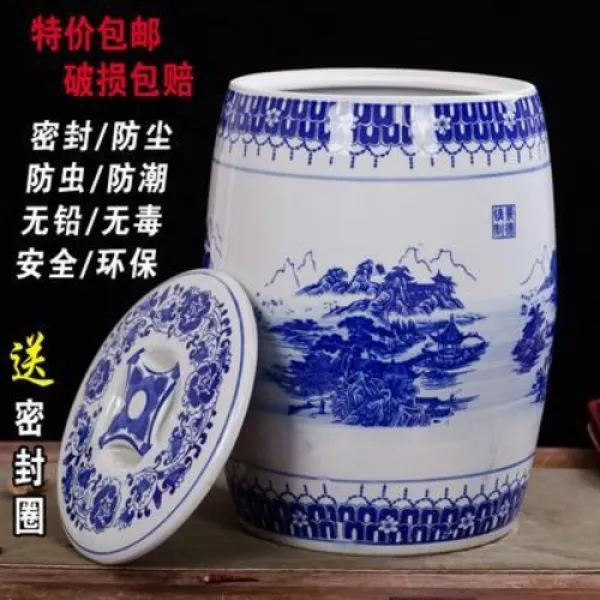 25근 도자기 쌀통 쌀통 30근 집 물독 50근 띠 뚜껑 밀봉 밀가루 항아리 김장독 기름독, 연련 동과단 감아 밀봉링