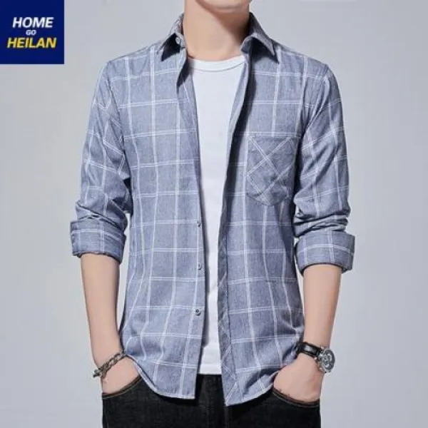 봄 남성 체크 셔츠 HOME GO HEILLAN 봄 비즈니스 셔츠 캐주얼 남성 긴팔 체크 워크셔츠 남풍 블라우스