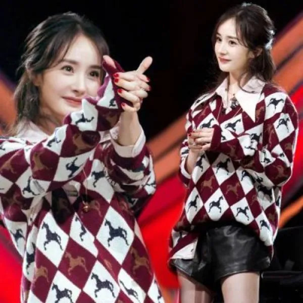 여자 아가일 마름모 체크 니트 스웨터 내일의 아들 2양멱 스타 동갑 마자가드 마름모 체크 박시 브이넥 긴팔 풀오버녀