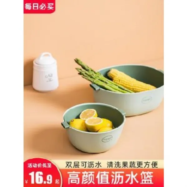 과일 채소 채반 세척 소쿠리 나혼자산다 싸리 품목 2층 취침용 건조물 바구니 가정용 주방, 01 라지 블루 [하이 톤 더블 드롭]