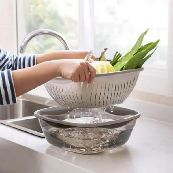 과일 채소 채반 세척 소쿠리 나혼자산다 싸리 홈스테이 2층 펀칭 바구니 세정 주방 바, 01 그레이 2개룩