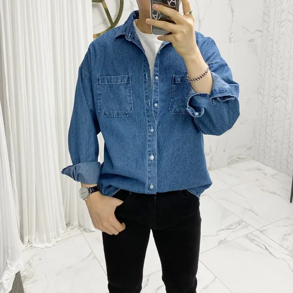 아도르클래식 바이오 워싱 코튼 오버핏 데님 청셔츠