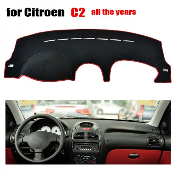 RKAC 자동차 대시 보드는 시트로엥 C2 용 매트를 다년간 다루고 있습니다. 왼쪽 핸들 대시 매트 패드 대시 커버 내부 몰딩 액세서리|자동차 더러움 방지 페드|, 1개, 단일, Black
