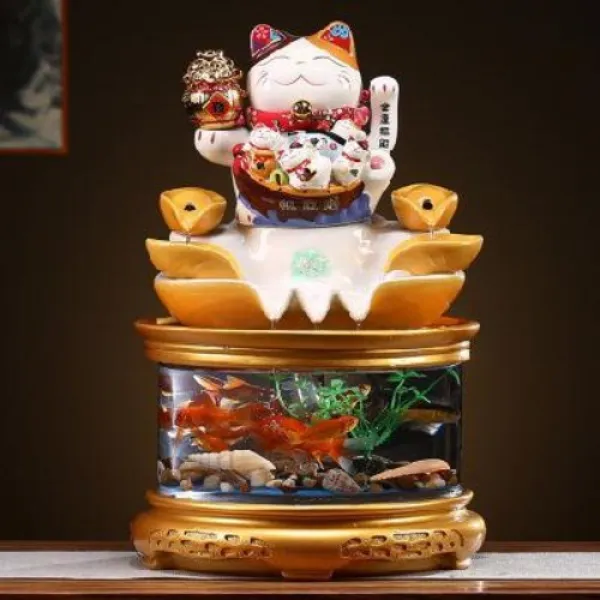 진주린 가정용수족관 홈 오피스룸 거실 돈벌이를 위한 고양이형 유리흐름어항 금붕, 01 수양이경관어항유수기