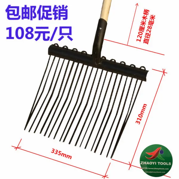 노멜마켓 퐁듀포크 이젝터포크 징조 틱톡 밀치 줍다 마분 농업용철 청삽 도구 우분 농사일 풀 작살 뻐드렁니 4, 나무자루 와이어 마분 포크