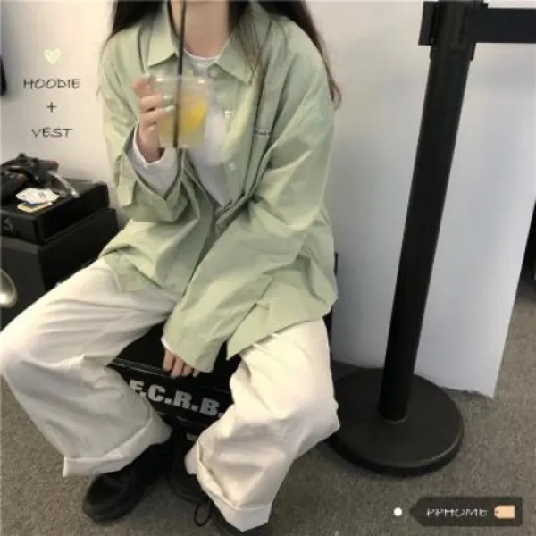 PPHOME 선택난항해~한과대학파소녀 시크하고 깜찍한잔글씨루즈긴팔셔츠4색