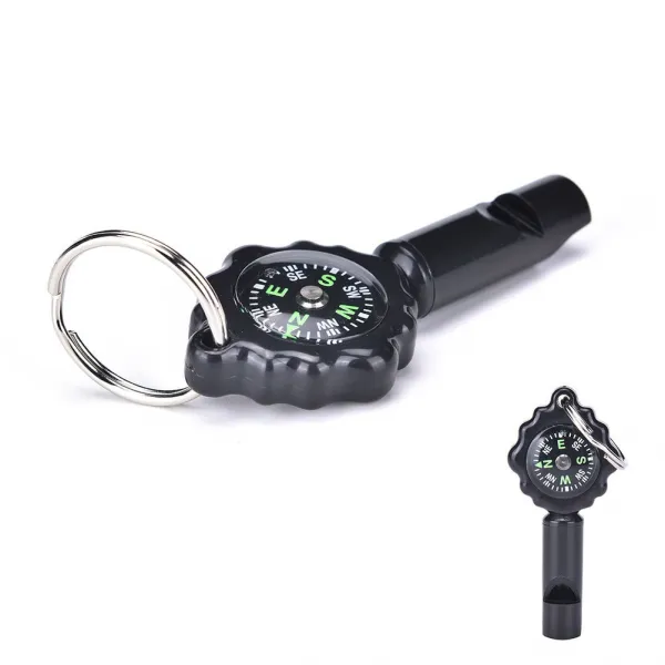 12 1 휘슬 키 체인 나침반 야외 캠핑 하이킹 유용한 검정색 도매|나침반|, 단일, 1개, 단일