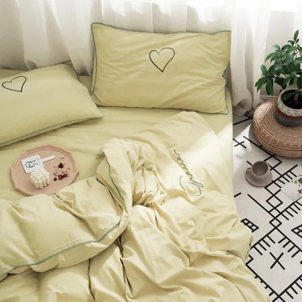 일본식 린넨 느낌 원사 염색 세척면 종 자수 파이핑 문학적 예술적 복고풍면 이불 커버 침대 시트 세트