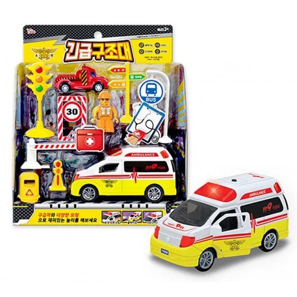 구조대 소방대.5 "회라형 라이브형 구급차 빨간색 주의: 구급차 한 대만 포함하세요.디자인이 제각각이다.작성자: KiNSMART