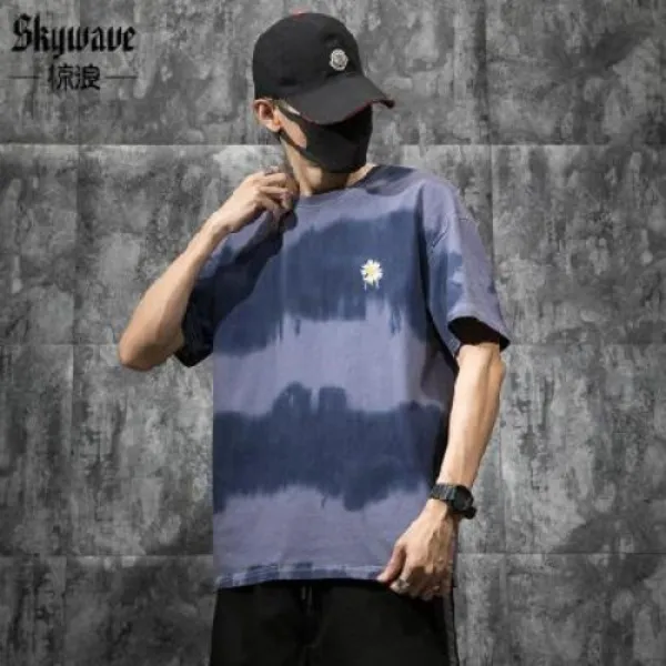 남성 20 30 40대 파티 2021년 봄 클럽 해변 반팔 티셔츠 물결표 그라데이션 나염 가성