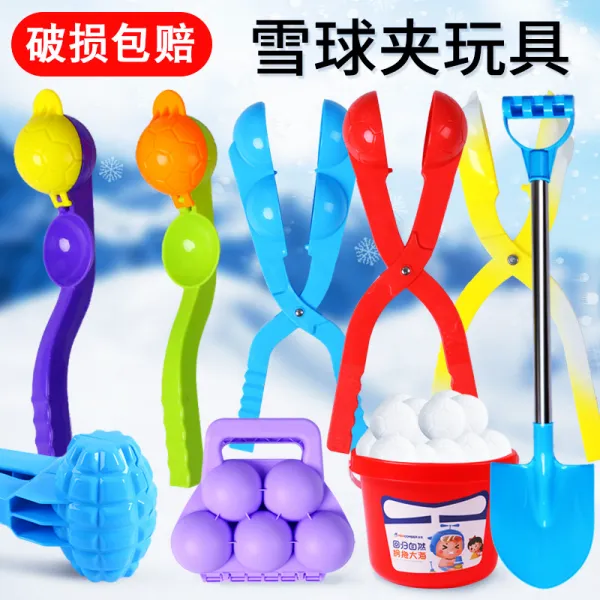 오리눈 집게 눈오리 오리눈사람 스노우볼 메이커 눈덩이 놀이기구 아기오리 인형 눈싸움 눈총 야외 장난감 눈사람 만들기 세트, 7.더블볼 클립