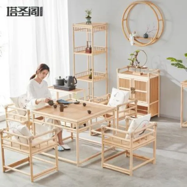 라탄티테이블 신중식가구 죽등선의차책상조합 거실 다다미차 며칠식 민박공부차탁대