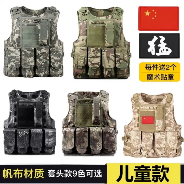 전술조끼 밀리터리조끼 배틀그라운드 어린이 방탄조끼 서바이벌 전술 어린이용 방탄복 위장, 06.A60-블랙(1.4m이상 어린