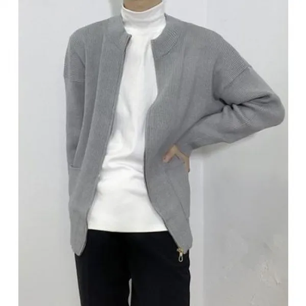 남자 가디건 편안한 카디건 남성 니트 오버 캐주얼 집업 노카라 니트에 도톰한 루즈핏 아우터 남풍