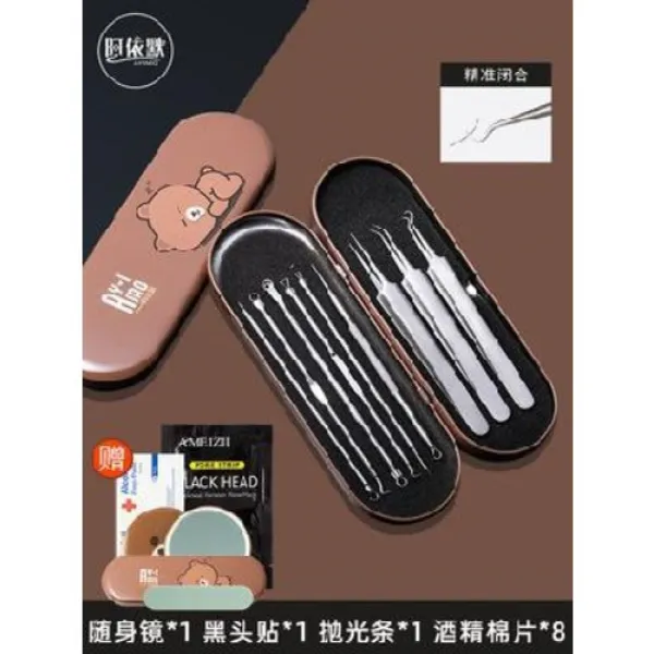 압출기 블랙헤드 좁쌀 여드름 제거 피지낭종 피르가즘 피부과 리자사이 분침 집게 세트 블랙, 01 1호 기본 4종 콤보 (8두무중복) 플