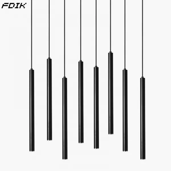 실린더 디 밍이 가능한 led 펜 던 트 조명 긴 튜브 램프 다이닝 룸 숍 바 장식 코드 펜 던 트 램프 배경 벽 조명|인테리어 라이트|, 1개, Black