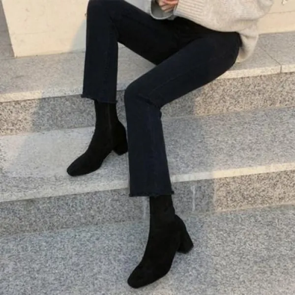 마이너스2인치 여성용 기모 블루 옆트임 부츠컷 데님 팬츠