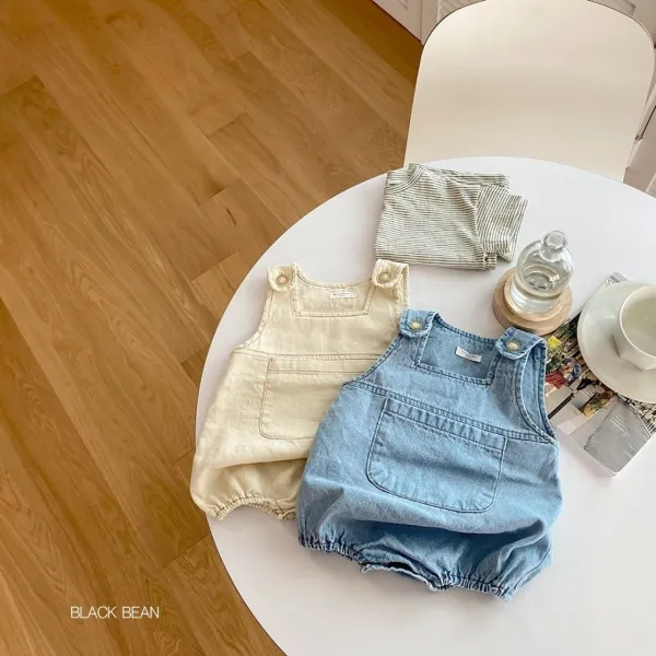 <난장판베이비> 블랙빈.베베 멜빵세트 2컬러 아기멜빵 티+멜빵세트 21여름