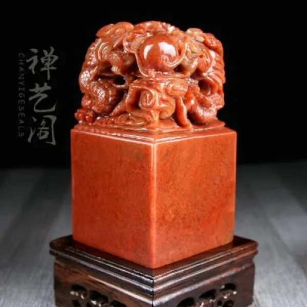 용모양 스탬프 법인 황옥 천연수산석쌍룡희주옥새인장석 금석수공전각 장서법명서화인장