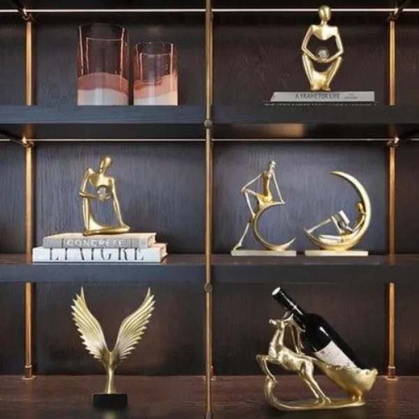거실 장 인테리어 장식 진열 유리 상 골드 톤온톤 술장 티비장 현대 실내 디어 공예품 소, 14 소라 불기 여신