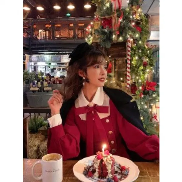 아카이네아채니 겨울야학원/프랑스복고소녀가 허리 잡아주어 날씬해 보이는 원피스 가을겨울
