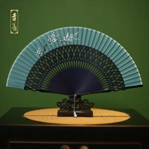 부채 전통 무용 선녀 부모님 선물 고급 길선부채 6인치 접이식녀선 흑색 비단선 중국 죽선선물선녀식견선, 04 모계해당 종려색 손잡이
