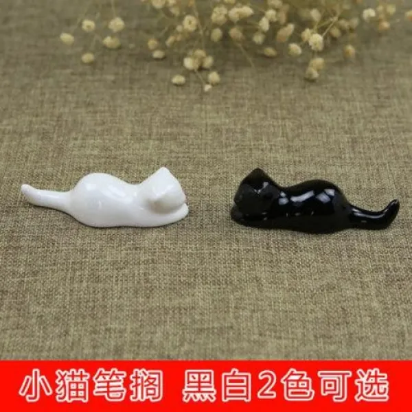 서예 수채화 캘리그라피 정리대 도자기 귀요미 고양이 붓펜 선반 창의여요 개봉작 진열서, 01 화이트 캣 펜 홀더