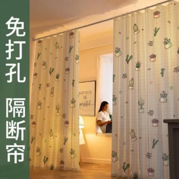 암막 커튼 찍찍이 창문 거실 간이 반창걸식 차광 모던 심플 무타공 장착 침실 숙소, 01 다육[고리걸이]큰단추+끈 부착